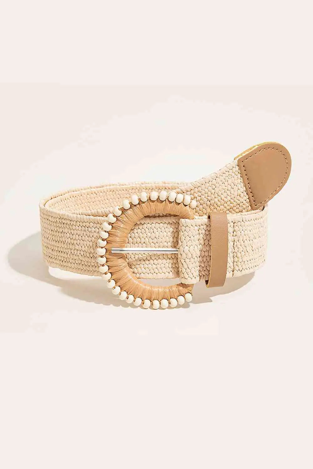 -Sturdy Straw-Design Buckle: The round buckle, with its robust straw design and added pearl detail, not only adds a dash of sophistication but ensures your belt remains securely fastened, giving you peace of mind as you go about your day.