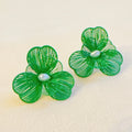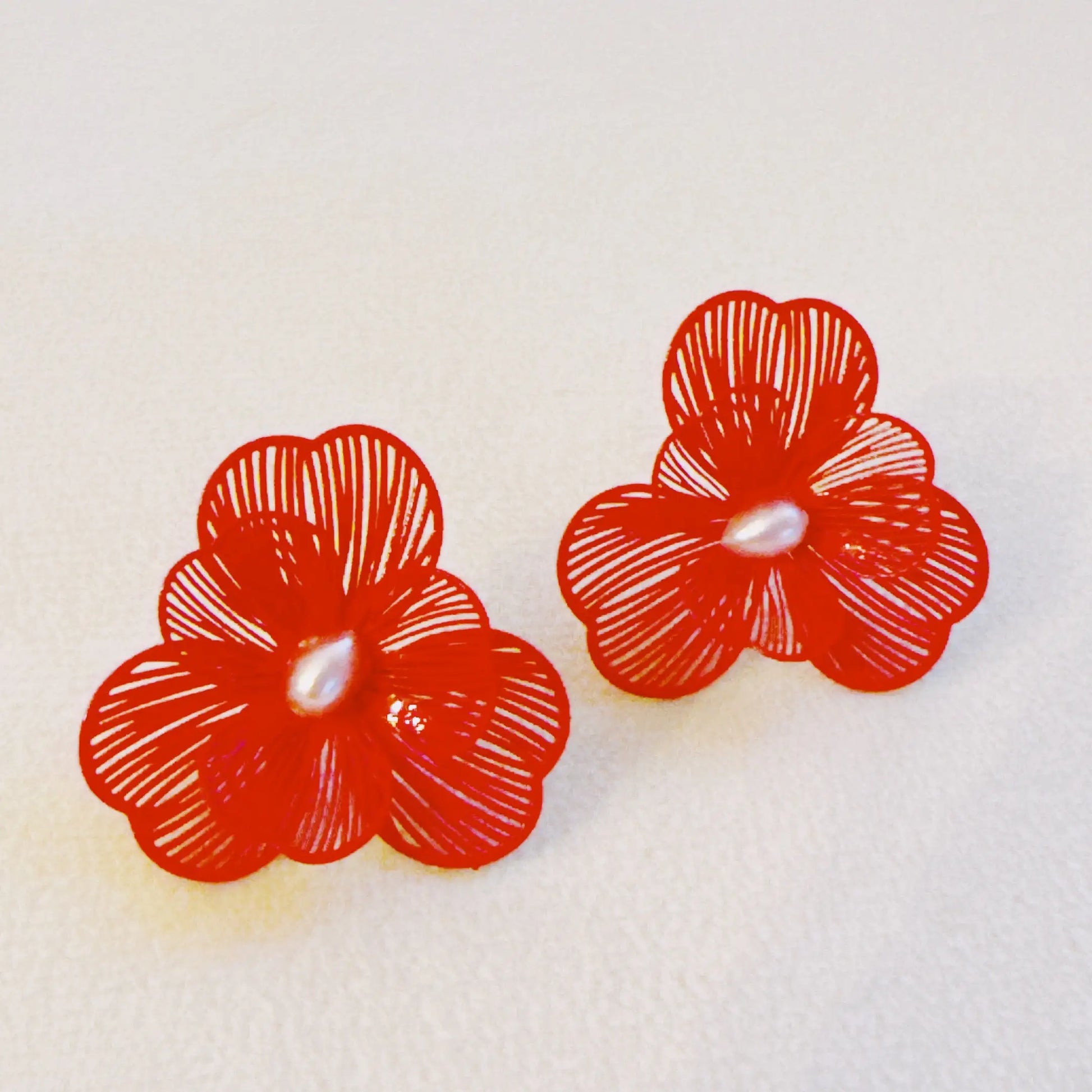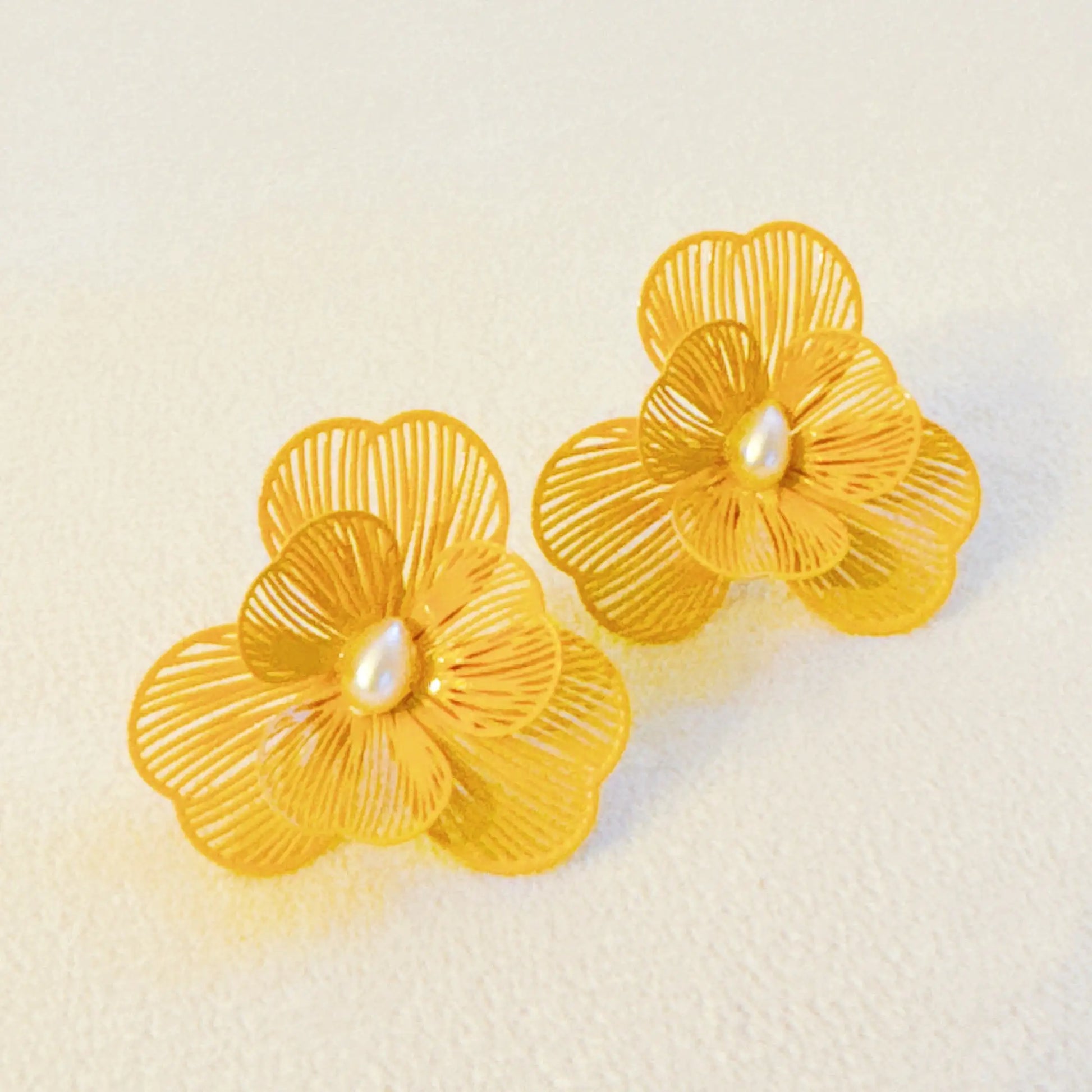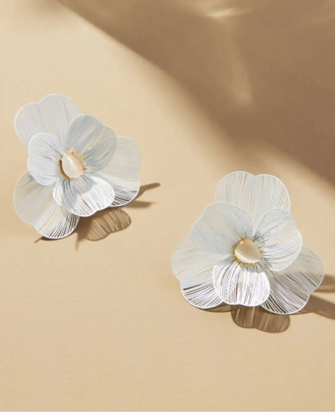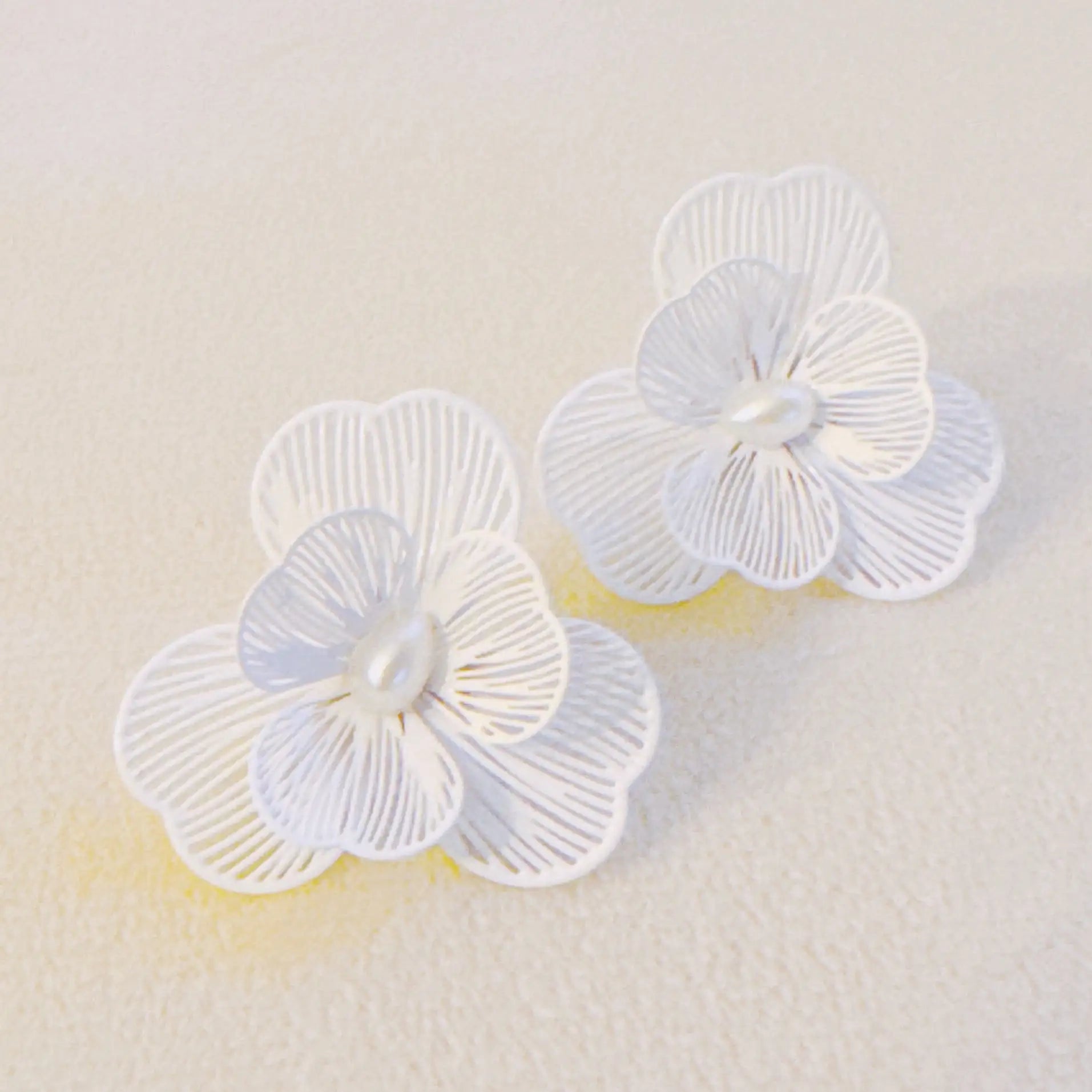 These earrings showcase a gorgeous, centered pearl surrounded by a delicate flower design. The combination of elegance and beauty make these earrings a perfect accessory for any occasion.
