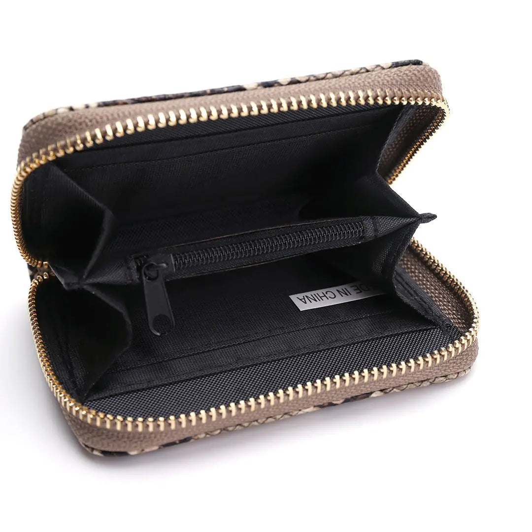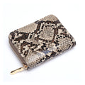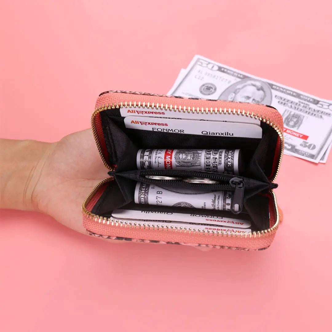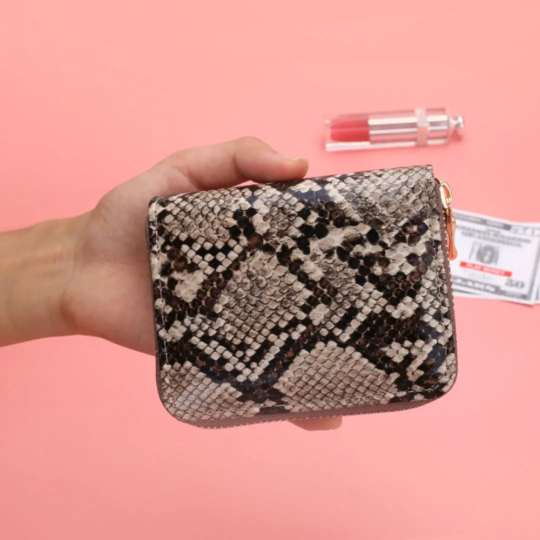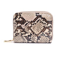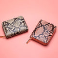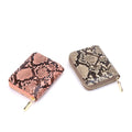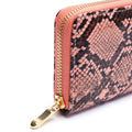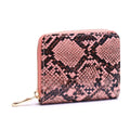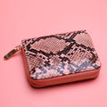 Very cute and practical zipper wallet in python skin print. Available colors: Pink & Brown. Vegan Leather. Dimensions: H: 3.5" x W: 0.7" x L: 4.3"Interior polyester lining.
