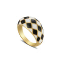 Roe Dolph Checkered Ring for Women 14K Gold Plated Checkered Rings Black and White Checkered Ring Checkered Band Ring Statement Finger Thumb Ring Fashion Rings Jewelry Gifts