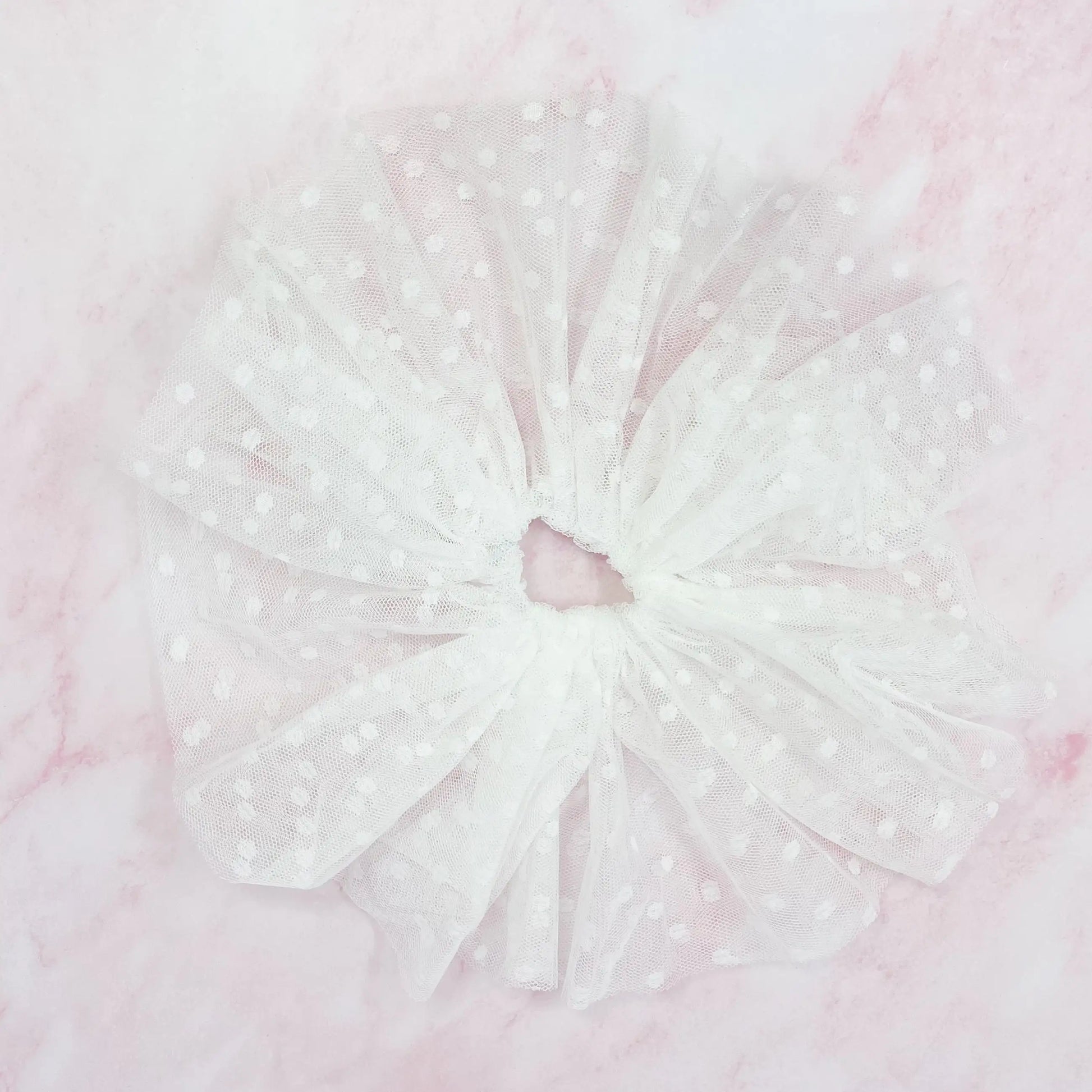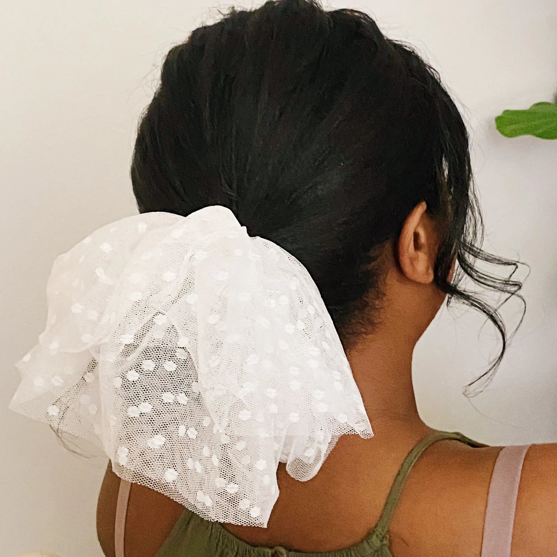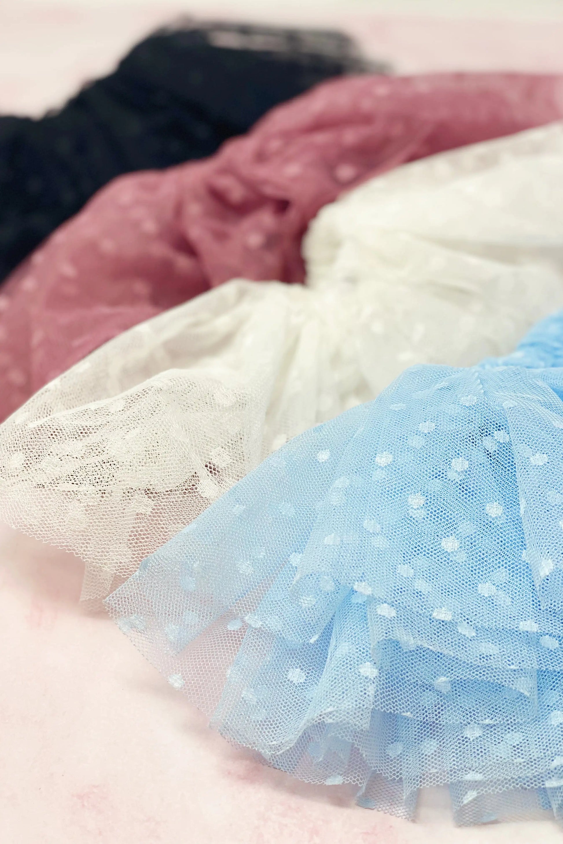 This Romantic Tule Hair Scrunch is a ballerina-inspired accessory that adds fullness and a romantic flair to any style. Perfect for everyday style, weddings, baby showers, and any special occasion, it ensures a beautiful finish to any look.