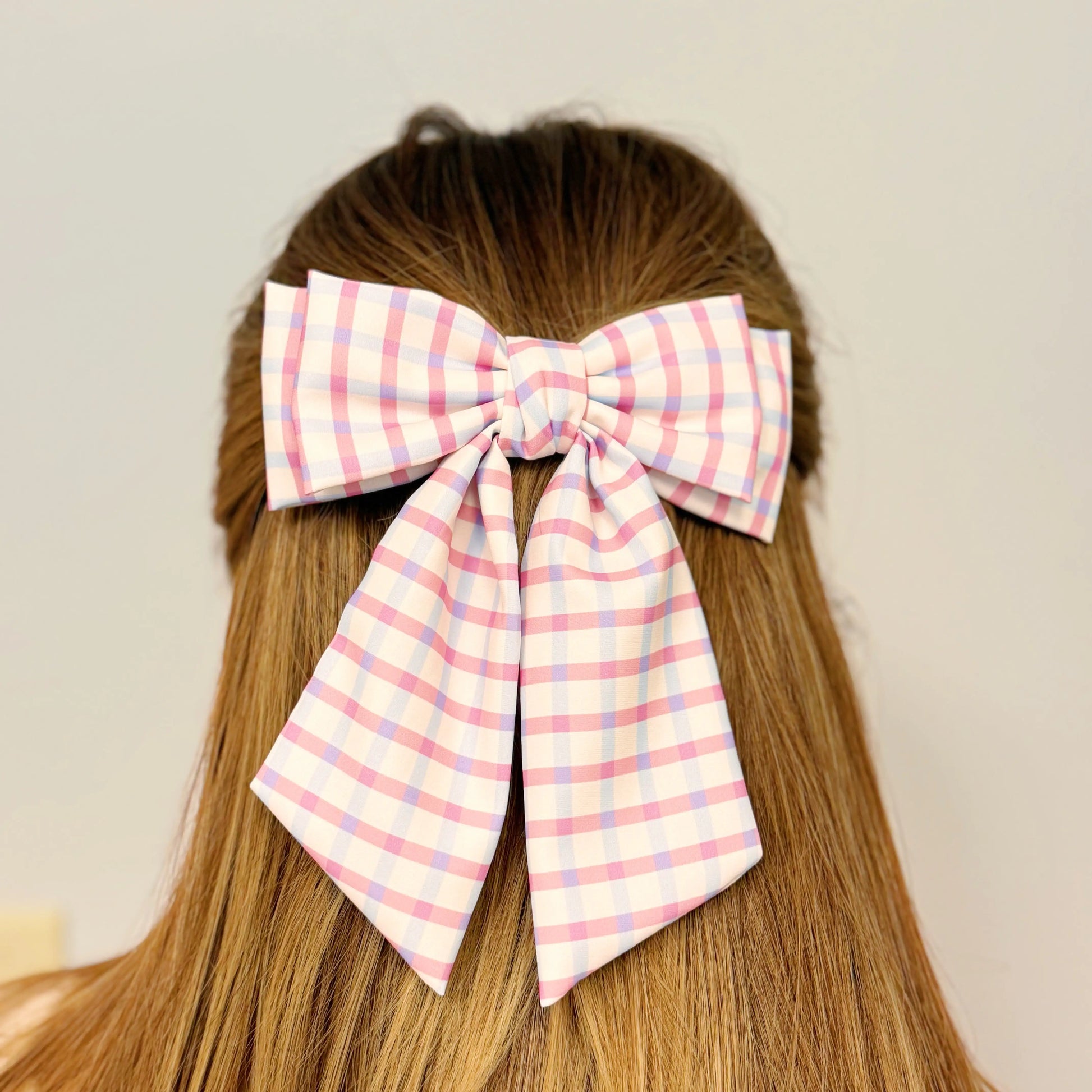 Expertly crafted with a unique double bow design, the Satin Precious Double Bow Hair Clip adds a touch of elegance to any hairstyle. The stylish pattern is sure to elevate your look, making it a must-have accessory.