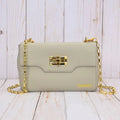 Just the right fit to keep your essentials organized beneath a graceful flap-front closure. Made in genuine leather with gold hardware. Black interior lining with inside pocket.