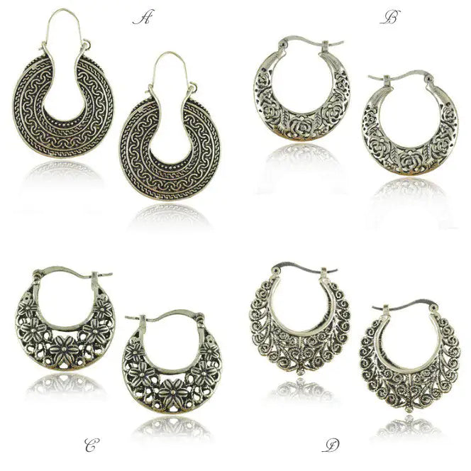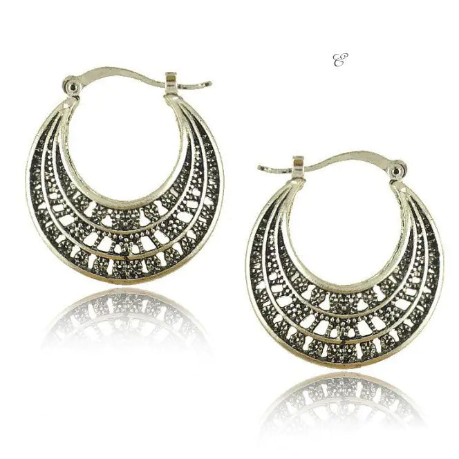Silver Tribal look Filigree Hoop Earrings For World Traveller