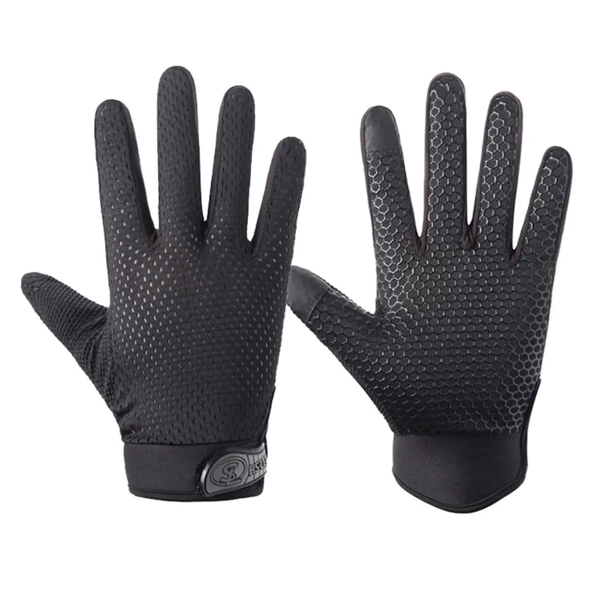 SUJAYU Professional Cycling Bike Gloves Men/Women Anti-slip Full Finger Bicycle Biking GlovesGreat Protection and ControlOur unique anti-slip silicone palm construction has shock absorption and impact resistance preventing your hands from getting hurt callous or rubbing.Comfortable WearingSoft and wear-resistant polyester fabric can fit well to your hands to ensure a more comfortable cycling.Breathable MaterialThe bike gloves are made using a moisture-wicking highly breathable Lycra fabric that keeps your hands cool and dry while biking.Air Venting HolesAdding venting holes keeps your finger cool and dry while biking making your hands complete breathable and comfortable in long cycling sports.Touchscreen Fullfinger GlovesWith a touchscreen design at the fingertips the phone can be quickly operated on the frame without removing gloves.Adjust Wrist ClosureThese driving gloves are easily wear fully dressed. Adjust the wrist closure to your fit to provide enough convenience without any fuss.NOTE-Please refer to the size chart in the product image area for choosing the fittest size.-If you prefer a "Loose Fit" please order one SIZE UP than you normally wear.Perfect choice for road and mountain riders who value comfort.Machine washable feature while keep high pro performance.Fit for both Men and Women made for cycling/hiking/climbing/camping/motorcycle/driving/outdoor sports.