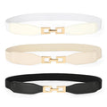 - Multiple Colors Option: 3 pack combinations to meet the daily wear needs. Available in black, brown, beige, white belt strap with shiny gold buckle retro gold buckle or silver buckle. The square design is fashion eye-catching and classic. Interlocking metal buckle easy to take on and off.