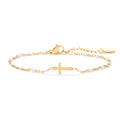 UILZ Dainty White Beads Cross Bracelet for Women 18K Gold Plated Minimalist Bead Cross Bracelet Christian Bracelet Gifts Religious Cross Jewelry for Religious Believers