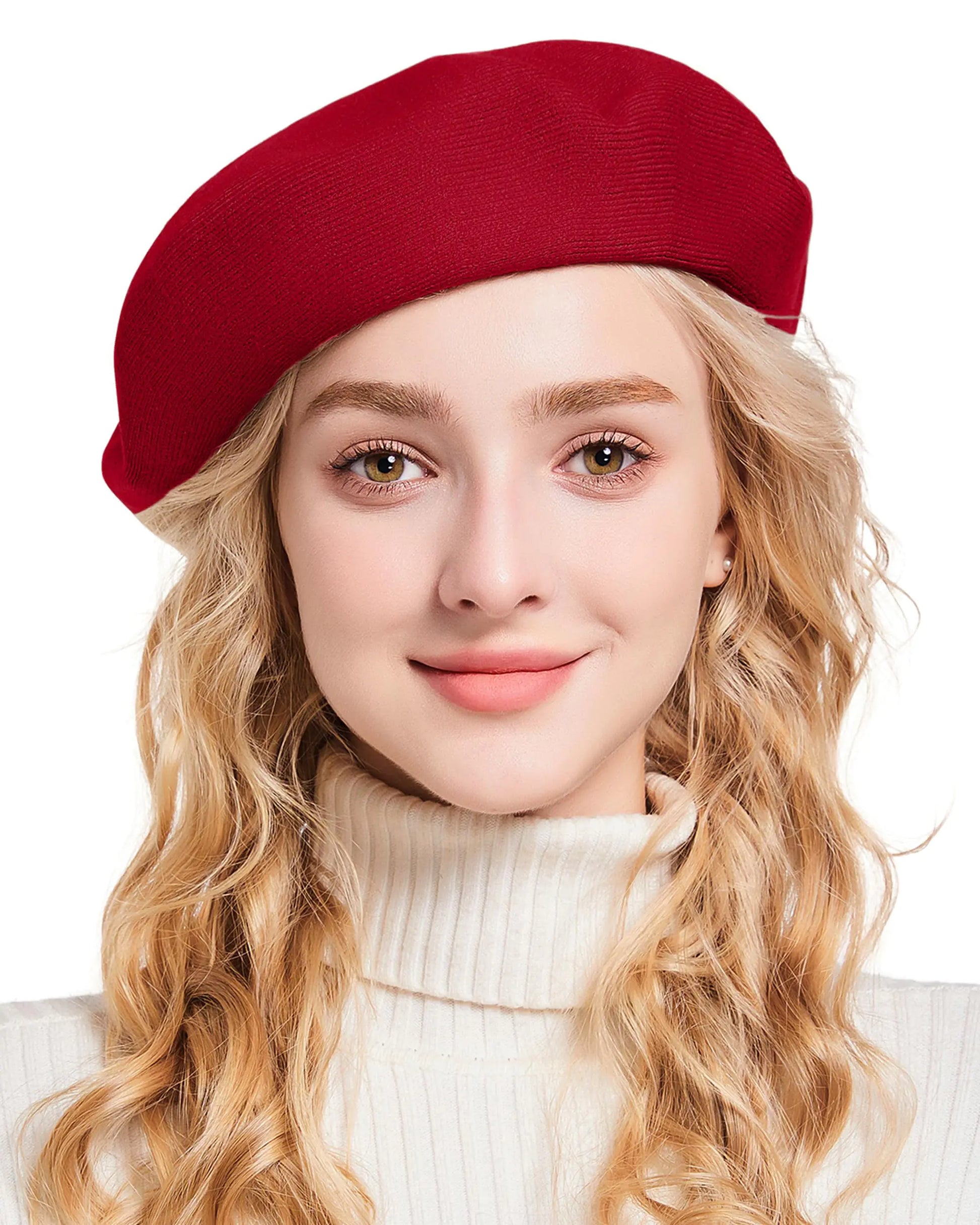 Umeepar Women French Beret Hat Reversible Double Layer Hat Solid Color (US Alpha One Size Red)