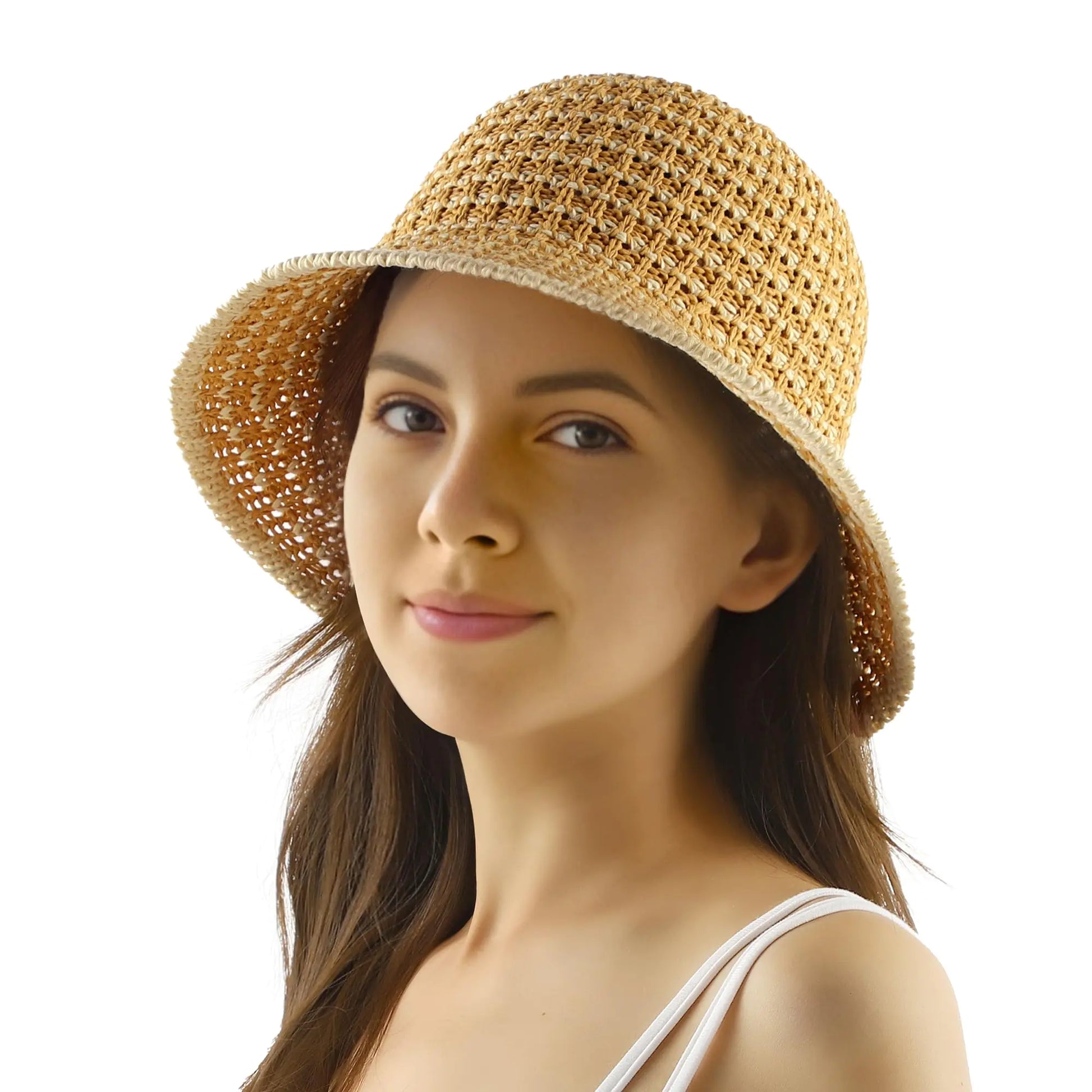 uTian Sun hat for Women Wide Brim Washable Packable Lightweight Summer Beach Cap Adjustable Straw Like Hat UPF UV Protection Round Khaki