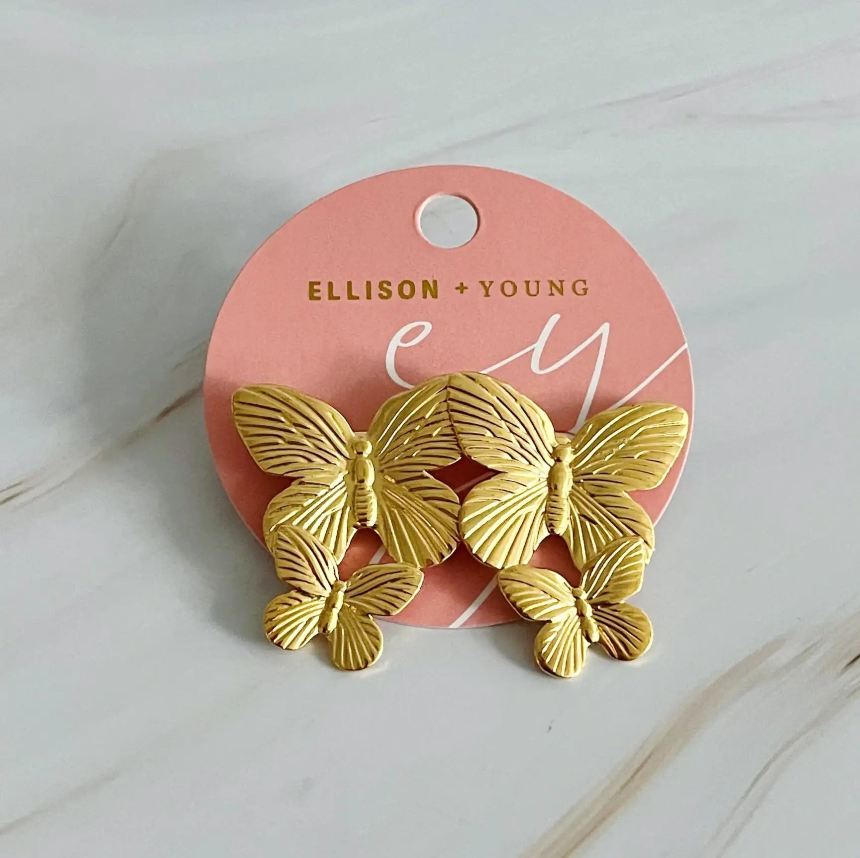 Experience timeless beauty with our Vintage Butterfly Duo Earrings. Crafted with a lovely vintage butterfly design, these earrings are sure to add a touch of elegance to any outfit. With a unique duo structure, these earrings are a must-have for any jewelry collection.