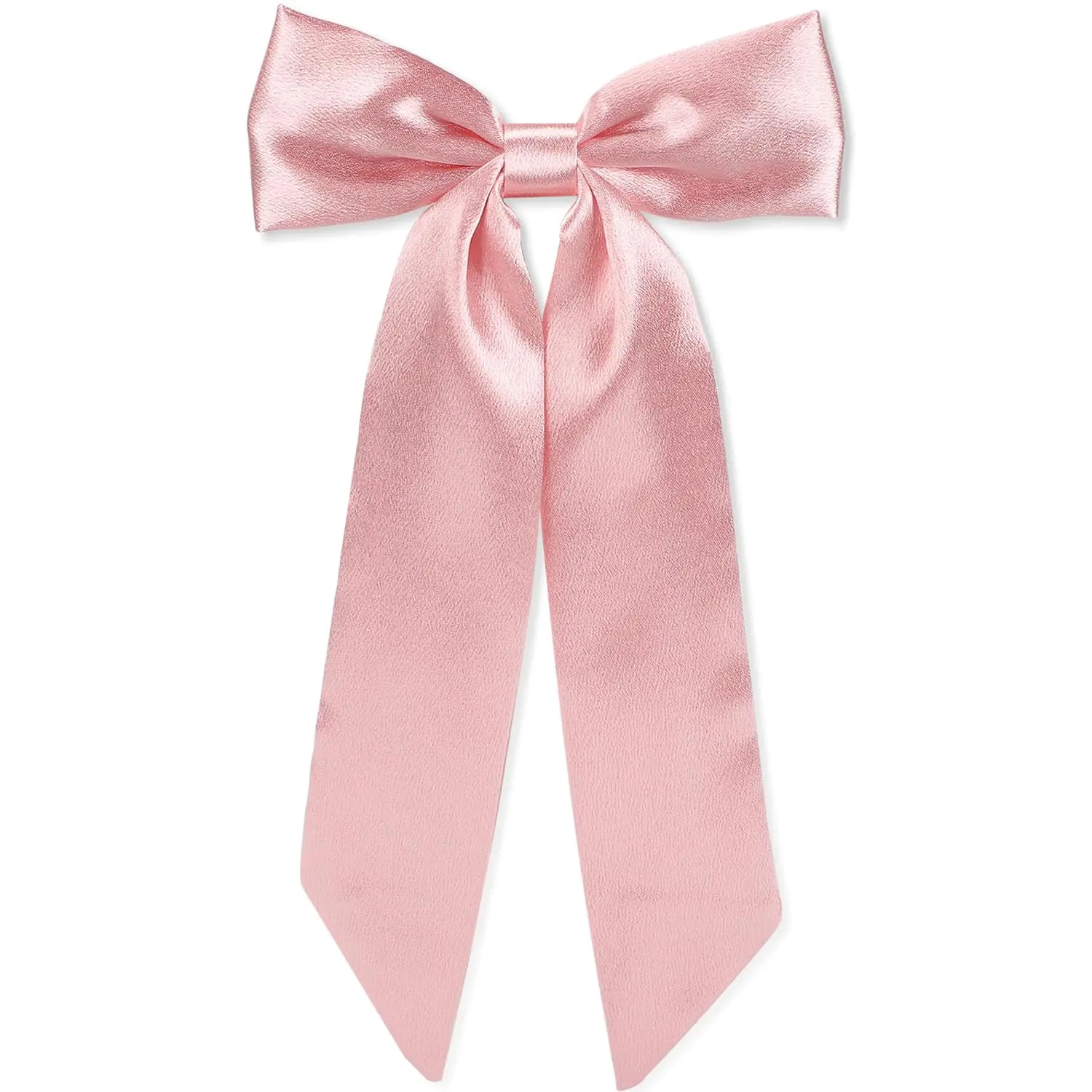 WantGor Long Tail Bow Hair Clips Hair Ribbon Bows Satin Bowknot Clip Large Hair Barrettes Cute Ponytail Holder Hair Accessories for Women Daily Party Wedding Prom (Pink)
