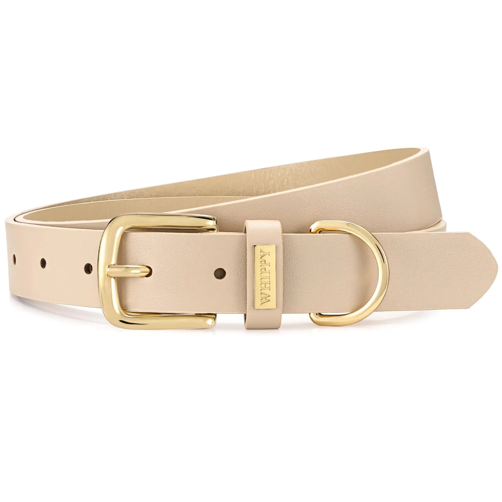 WHIPPY Women Leather Belt Fashion Ladies Waist Belt with Gold Buckle Casual Leather Belt for Jeans Pants Dresses Beige XXL