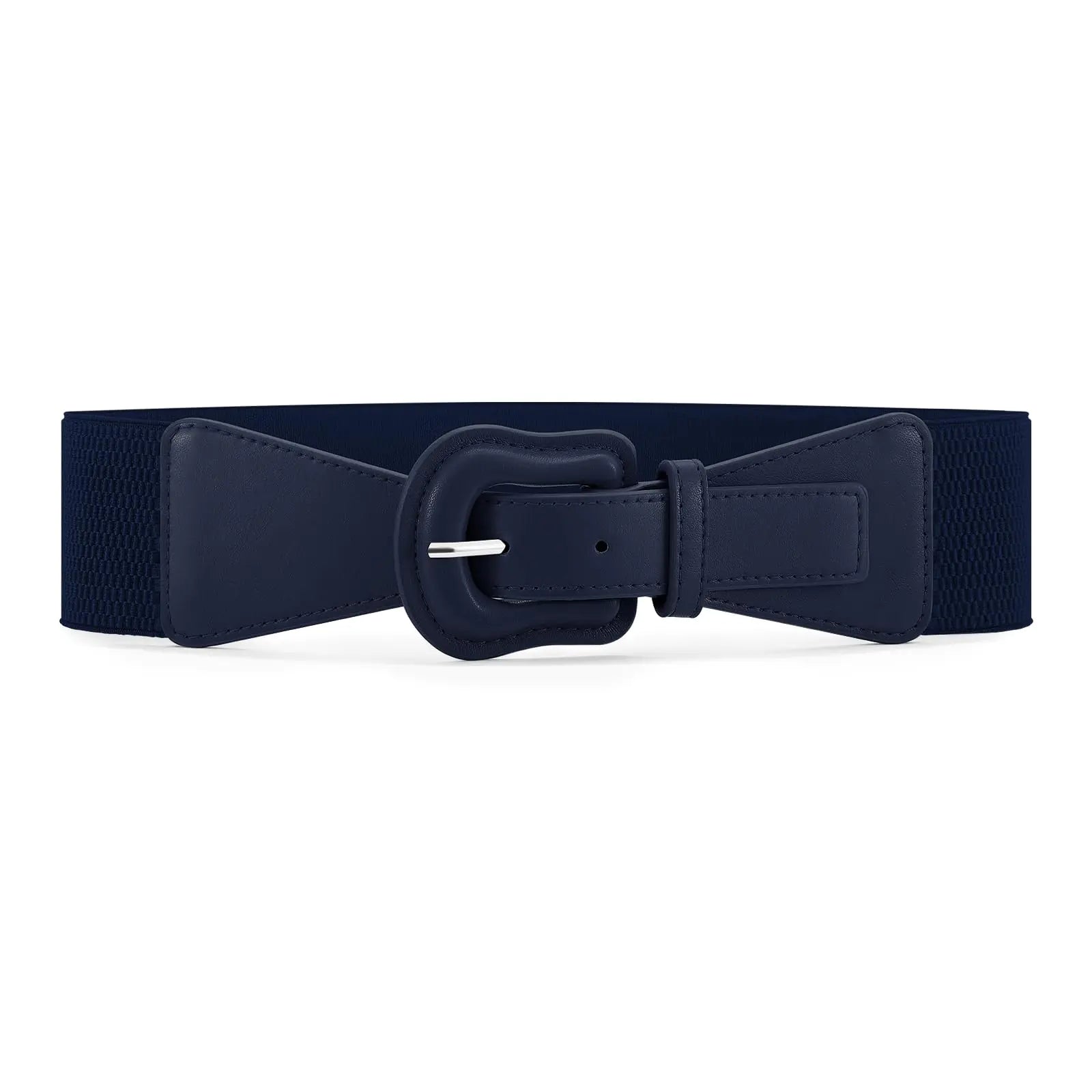 WHIPPY Women Wide Elastic Belt Ladies Stretch Dress Belt Vintage Waistband Thick Belt with Interlock Leather Buckle Navy Blue Fit Waist Size 26"-29"