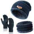 Winter Beanie Hat Circle Scarves Touchscreen Gloves Set Warm Thick Fleece Lined Skull Cap Gloves Neck Warmer for Women Men Navy Blue