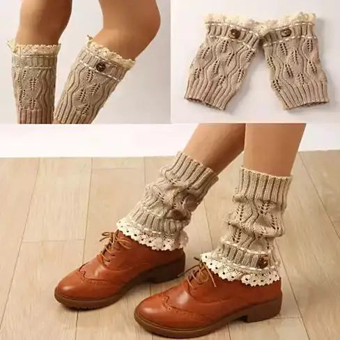 Get all warmed up and sooth your soul too with these super cute Cable knits at your feet they come with Palm leaf design and a running stitch atop the socks accompanied with a flirty lace and a Coconut shell Button. Go on a Winter Date Night in these and get cozy !Flaunt them with a tunic dress and high boots or how about pairing them with your boyfriend jeans having tea at home by your fireplace.