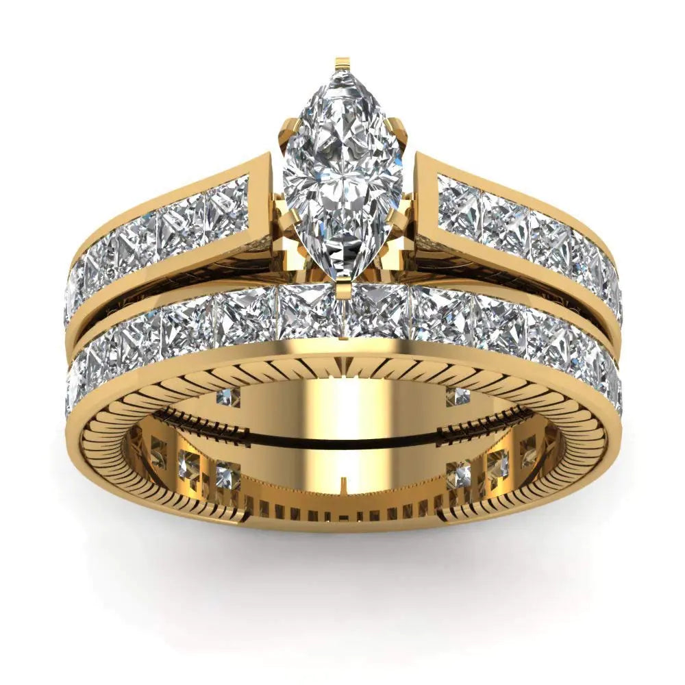Yellow Gold Filled Bridal Sets Marquise cut Cz Engagement Ring 2pcs Womens Wedding Ring Sets