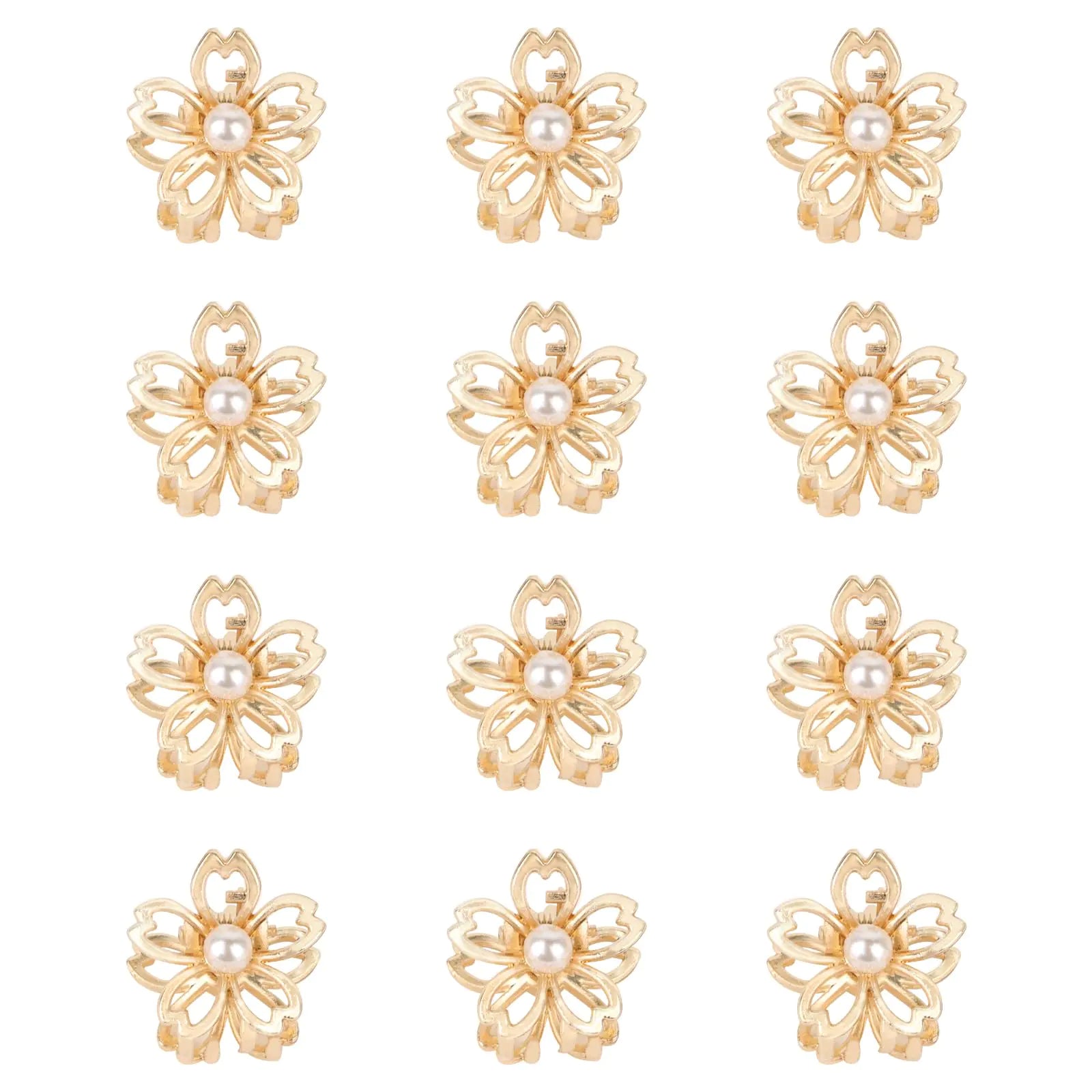[Package: 12 pieces mini metal flower hair clips with pearl for girls and women the classic gold color can be easily matched with your wardrobe. "Just the Right Size: Each flower hair clip is about 0.98 inch in diameter which are cute and small. The lightweight clips are easy to carry and wont put any strain on your hair or scalp." Premium Material: Made of durable metal and artificial pearl after strict color fixing process the flower claw clips are wear-resistant and not easy to fade. Suitable for Many Occasions: Exquisite small flower hair clips are suitable for many occasions such as daily use weddings proms and parties to make you stand out from the crowd. Perfect Gift: Cute hair clips are wonderful gifts for your girls and women in all important festival and congratulation such as Christmas Halloween birthday etc.]