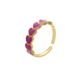 Share the love with these chain of hearts, adjustable, stackable rings. Wear just one, or all together for a fab stack. Available in 8 fun colors to match every any outfit you can think of. Made of gold plated brass and fun color drip oil.